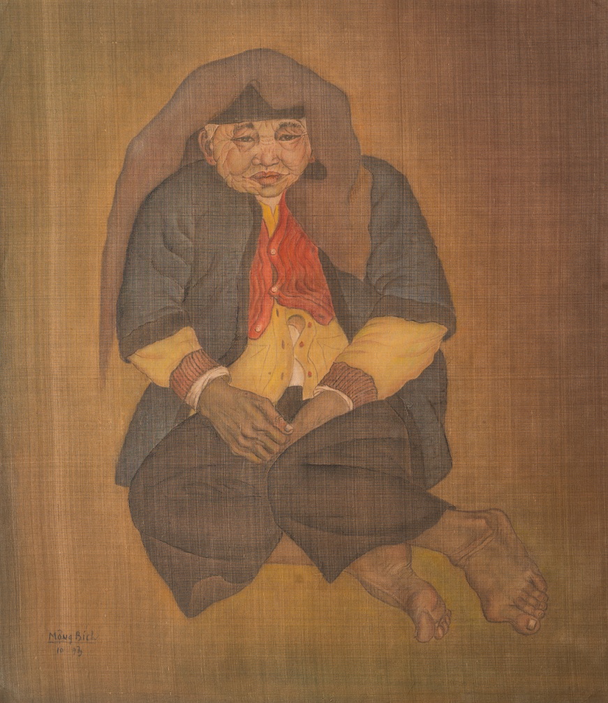 Bức tranh họa sĩ Mộng Bích vẽ một bà lão ăn mày. |