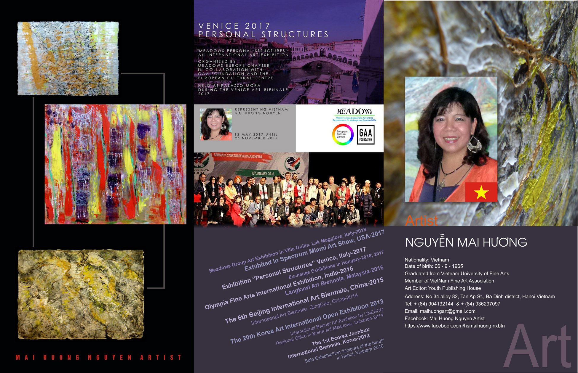"Như sự kiện song hành của Biennale Venice, có những đề tài mà nhóm nghệ sĩ quốc tế đưa ra để chúng tôi sáng tác, làm thành bức tường tranh của các họa sĩ đại diện cho mấy chục nước trên thế giới. Vẽ nhưng làm sao tất cả những bức tranh đấy phải ăn nhập với nhau như một dàn đồng ca, để mà trưng bày ở đấy cùng một tiếng nói chung. Đấy là những tác phẩm mang tính tập thể. Nó đã được di chuyển từ Italia, rồi được bày ở bảo tàng Louvre (Pháp). Có những ý tưởng, khi mà tổ chức Meadows ( bao gồm các nghệ sĩ quốc tế vì hòa bình cũng như phi lợi nhuận - có những ý tưởng thì cùng nhau sáng tác, để cùng nhau trưng bày. Đây cũng là một cách gắn kết các nghệ sĩ với nhau." - Mai Hương nhớ lại.