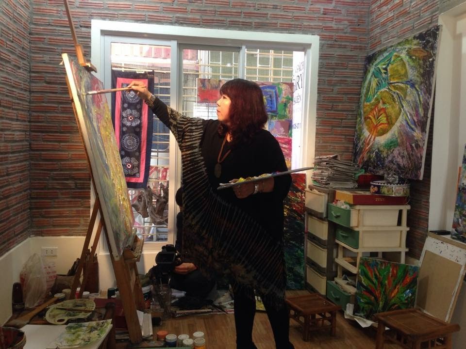 Tôi từng tham gia workshop của một nghệ sĩ người Nhật nổi tiếng, anh làm về nghệ thuật hành vi. Khi biểu diễn, anh có đề nghị mọi người sẽ tương tác cùng anh ấy. Những họa sĩ tham gia tương tác có thể cùng sáng tạo trong lúc anh ấy làm nghệ thuật hành vi. Tôi là người được chỉ định đầu tiên. Người tương tác đầu tiên sẽ ảnh hưởng đến những tương tác sau. Lúc bấy giờ, khi anh làm đến động tác đấy thì tôi vẽ luôn cái bóng của anh ở trên phông và những người khác đi ra sau thì lại nối nhau để vẽ như thế. Cuối cùng, chúng tôi để lại được một bức tranh trên tường rất đẹp từ ngần ấy nghệ sĩ cùng tham gia một lúc. Tôi muốn nói rằng nghệ thuật bây giờ phát triển rất xa, nhưng cuối cùng vẫn là cái đẹp đưa được đến với người xem." - Mai Hương chia sẻ.