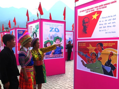 Chào mừng kỷ niệm 70 năm Ngày toàn quốc kháng chiến, chào mừng Ngày Di sản văn hóa Việt Nam 23/11 và nằm trong chuỗi hoạt động chuẩn bị cho Ngày hội văn hóa dân tộc Mông toàn quốc lần thứ II, ngày 15/11 tại Quảng trường 26/3 thành phố Hà Giang, Cục Văn hóa Cơ sở - Bộ Văn hóa, Thể thao và Du lịch phối hợp với tỉnh Hà Giang khai mạc triển lãm tranh cổ động toàn quốc. Triển lãm với nội dung tuyên truyền kỷ niệm 70 năm Ngày toàn quốc kháng chiến và tuyên truyền về nếp sống văn minh trong lễ hội; đồng thời cũng phê phán những hành vi không phù hợp với thuần phong mỹ tục trong hoạt động và tổ chức lễ hội, nhằm bảo tồn và phát huy những giá trị văn hóa văn minh lành mạnh. Triển lãm giới thiệu 114 bức tranh cổ động được chọn từ 1.295 tác phẩm của hơn 400 họa sĩ chuyên nghiệp và không chuyên trên toàn quốc. Trong đó, 60 tác phẩm tranh cổ động thể hiện nội dung tuyên truyền kỷ niệm 70 năm Ngày toàn quốc kháng chiến. 54 tác phẩm tuyên truyền về thực hiện nếp sống văn minh trong lễ hội, phác họa những nét đẹp trong văn hóa truyền thống của người Việt Nam...