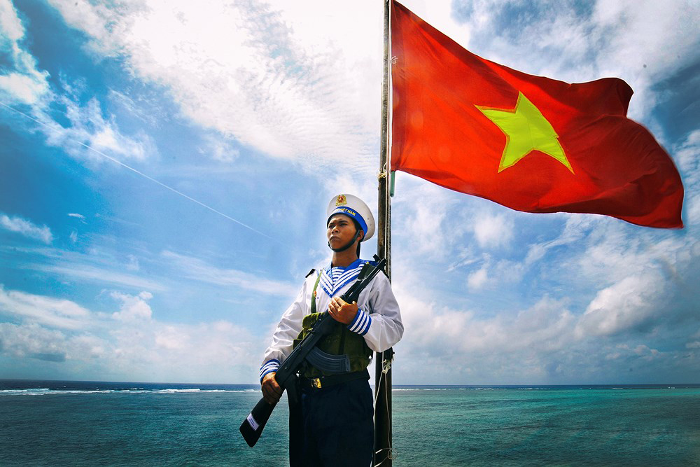 Người lính trên đảo Trường Sa giữ chắc tay súng canh giữ biển trời của Tổ quốc - Ảnh: Quang Dũng/Báo Nghệ An. |