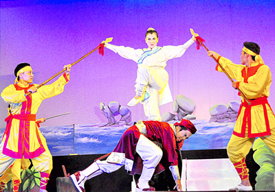 | Cảnh trong vở cải lương Tiểu anh hùng Nam quốc của nhóm Đồng ấu Bạch Long |