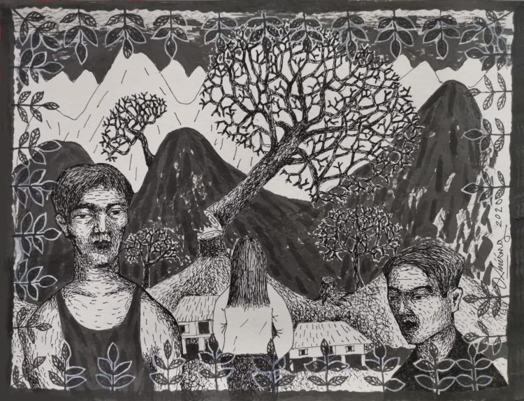 Tranh của họa sĩ Quách Đông Phương minh họa truyện Những người thợ xẻ của nhà văn Nguyễn Huy Thiệp - Ảnh: Đông A Gallery |