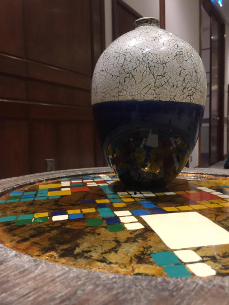 Đinh Công Đạt, như cách nói của người bạn thân-họa sỹ Lê Thiết Cương là luôn muốn đạt tới sự tối đa, cầu kỳ và phức tạp. Vậy nhưng, sự “cầu kỳ và phức tạp” của nhà điêu khắc Đinh Công Đạt thể hiện ở những tác phẩm trong triển lãm này đều rất tuyệt vời. Đơn giản như cái hộp đựng xì-gà nhỏ xinh anh đã phải mất 3 năm để chế tác nó, chỉ vì chưa nghĩ ra cách làm cái núm cho nó vừa đẹp vừa độc. Còn những chiếc mâm gỗ anh đã phải mất hàng năm trời lặn lội lên những bản làng xa xôi ở miền núi phía Bắc tìm mua và mang về thiết kế lại, khoác cho nó một dung mạo mới. Những chiếc mâm được phủ thêm lớp sơn ta tự nhiên, trang trí màu sắc rồi được đặt trên những chiếc chân thép trông rất chắc chắn và vừa vặn. Vậy là chiếc mâm bị bỏ đi đã có một đời sống mới, một thân phận mới: “Nó tiếp tục có một đời sống, một giá trị sống khác. Nếu bạn nhìn cái mâm tròn bằng gỗ nó chỉ là cái mâm để ăn cơm thì sẽ khác. Nhưng bạn thử tưởng tượng từ cái mâm ấy có bao nhiêu đứa trẻ được sinh ra và lớn lên; bao nhiêu đứa trẻ ăn cơm; bao nhiêu ông chồng say rượu gục trên mâm rồi đạp đổ mâm. Ngoài ra còn bao nhiêu cặp vợ chồng bắt đầu đời sống vợ chồng từ cái mâm, và rồi lại ly dị cũng từ đó thì đời sống của cái mâm này đã khác. Tôi đã cho nó một cuộc sống khác để nó kéo dài ra…”