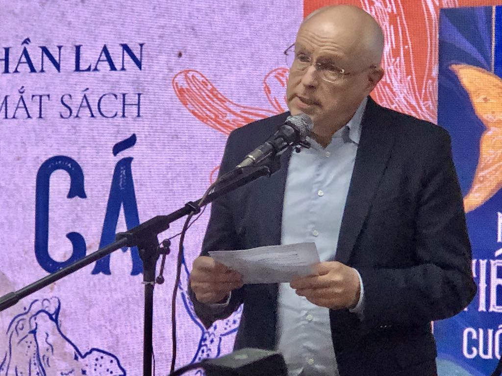 Ông Keijo Norvanto, Đại sứ Phần Lan tại Việt Nam phát biểu tại buổi ra mắt sách. |