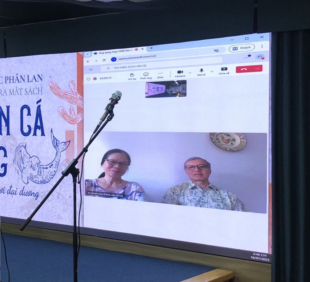 Hai dịch giả Bùi Việt Hoa và Võ Xuân Quế tham gia online từ Phần Lan. |