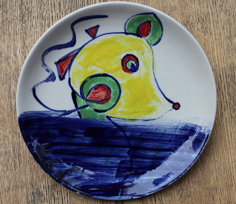 Ngoài tranh vẽ trên chất liệu sơn dầu, sơn mài, bột màu, giấy dó, acrylic, tổng hợp, triển lãm còn có các tác phẩm gốm Bát Tràng và Hương Canh. Ở đó, hình ảnh con giáp đầu tiên trong 12 con giáp được thể hiện với nhiều nét cách điệu, biến hóa sinh động. Hình ảnh đó có trên bình hoa, lọ gốm hay đĩa gốm qua những họa tiết tỉ mỉ trang trí hình con chuột.