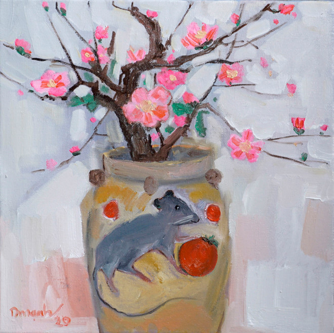 Lấy chuột làm biểu tượng, các họa sĩ mỗi người mỗi vẻ, mỗi kiểu Tý riêng cho mình. Riêng mà chung. Chung nhưng riêng. Nhưng đều sáng tạo. Nếu các họa sĩ Bình Nhi, Lâm Đức Mạnh, Nguyễn Quốc Thắng…say sưa với các bình hoa ngày Tết sặc sỡ bên những hình chú chuột như các nhân vật cùng hòa vào cái vui đón xuân, thì các họa sĩ khác lại thể hiện trực diện hình các chú chuột với nhiều kiểu dáng và chất liệu khác nhau.