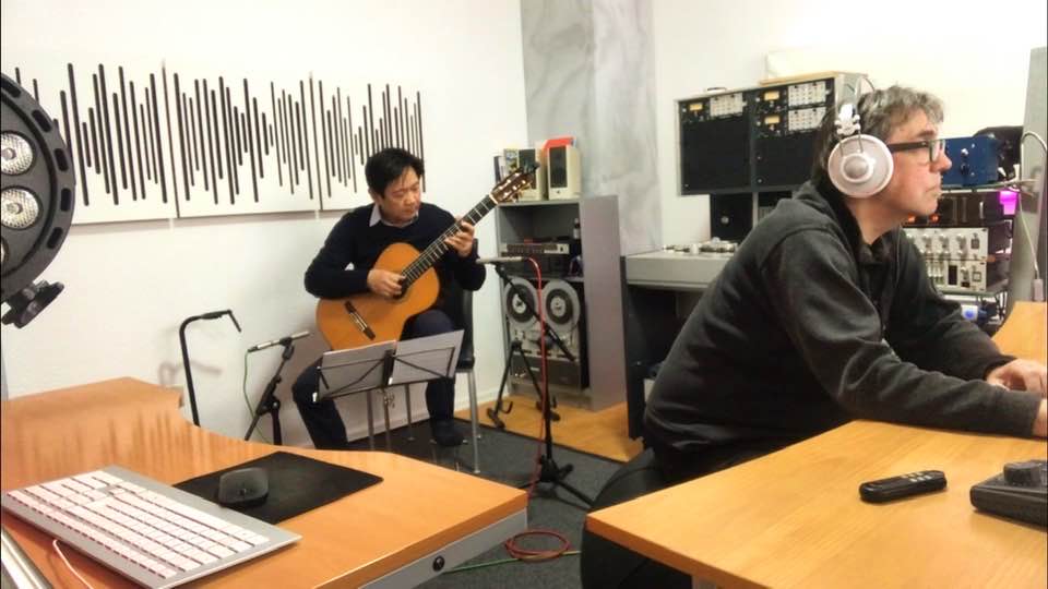 Nghệ sĩ guitar Đặng Ngọc Long trong phòng thu. |