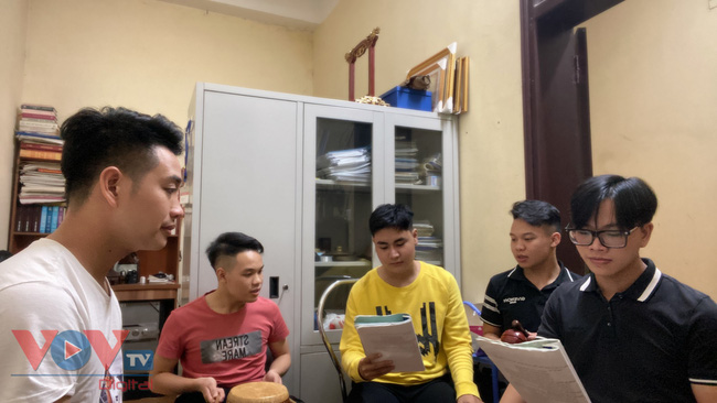 Nghệ sỹ Lại Thanh Minh và các nghệ sĩ trẻ đất Thành Nam. Ảnh: VOV |