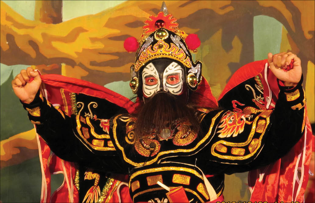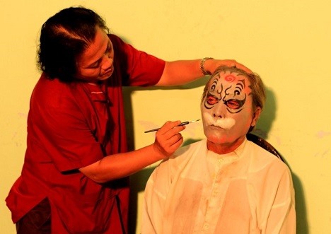 Nghệ nhân La Thanh Hùng vẽ mặt cho diễn viên trong nhà hát. Ảnh:NVCC |