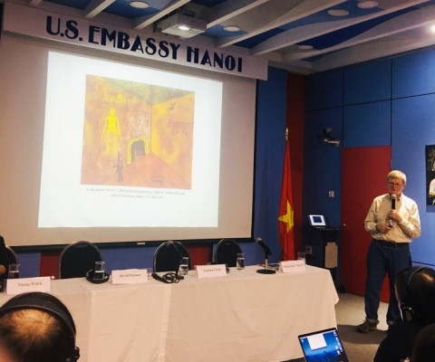 Không nhớ chính xác bao nhiêu lần đến Việt Nam kể từ năm 1987, ông David Thomas - cựu binh Mỹ, đã trở nên gắn bó với đất nước và con người nơi đây. Vượt qua ký ức của một người lính từng tham chiến tại Pleiku thập kỷ 1960-1970, ông đã dùng hội họa và văn chương để viết lên nhiều câu chuyện đầy dung di và ý nghĩa. Sáng lập Hiệp hội nghệ thuật Đông Dương- nơi đang giúp đỡ nhiều nghệ sĩ trẻ Việt Nam khởi nghiệp, David Thomas chính là người Mỹ đầu tiên tổ chức cuộc triển lãm mỹ thuật gây tiếng vang “Nhìn từ hai phía” dành cho 40 họa sĩ hai nước. Người cựu binh mắc căn bệnh Parkinson- di chứng da cam này tâm sự, những nỗi đau của không chỉ ông mà còn biết bao người Việt và người Mỹ đang phải chịu đựng, đã thôi thúc ông có những dự án nghệ thuật nhân văn về đề tài chiến tranh: