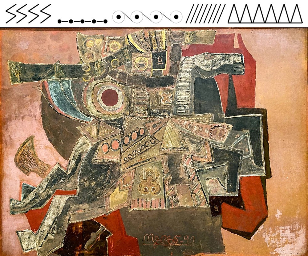 Ngựa trong tranh vẽ Thánh Gióng của danh họa Nguyễn Tư Nghiêm, với những họa tiết trang trí và khí giới đặc trưng của văn hóa Đông Sơn - Ảnh: Báo Tiền phong |