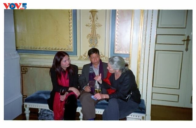 Nhà văn Nguyễn Huy Thiệp với dịch giả Karin Lidén tại Toà nhà Thị chính Thành phố Gothenburg 2003 (cùng dịch giả Diệu Hường Mimmi Bergström) - Ảnh tư liệu của dịch giả Diệu Hường |