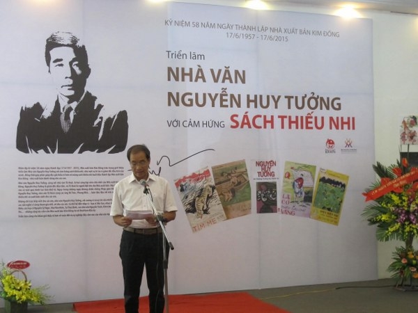 | Con trai nhà văn, anh Nguyễn Huy Thắng, trong một buổi triển lãm về tác phẩm thiếu nhi của Nguyễn Huy Tưởng do NXB Kim Đồng tổ chức |