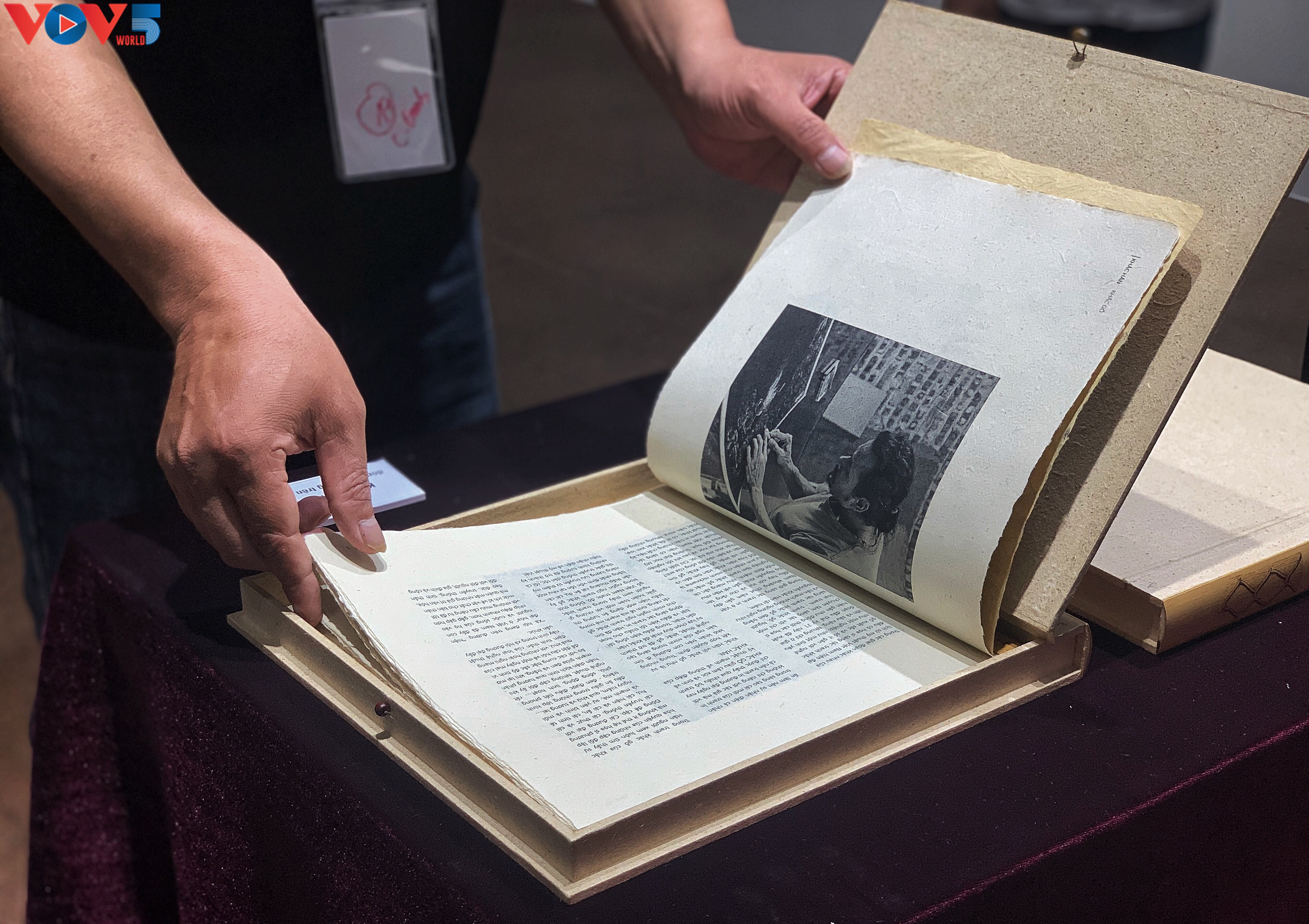 Sách “Khắc Hân khắc gỗ” được làm thủ công trên giấy trúc chỉ - Ảnh: Phạm Hằng |