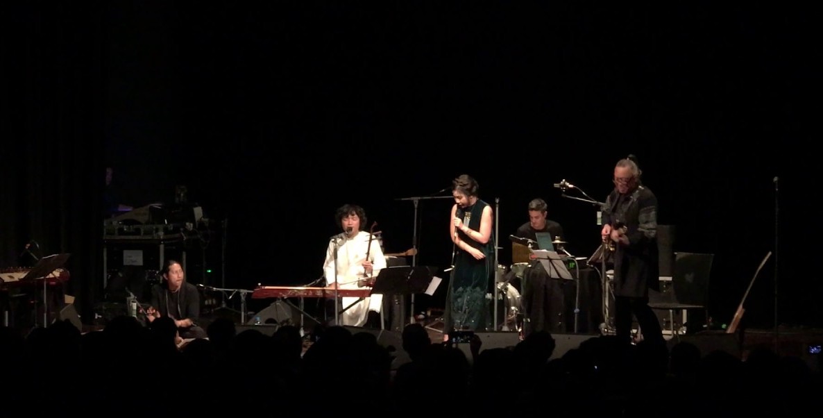 | Nhạc sĩ Nguyên Lê, Ngô Hồng Quang, ca sĩ Mỹ Linh cùng các cộng sự trong đêm trình diễn tại Hà Nội |