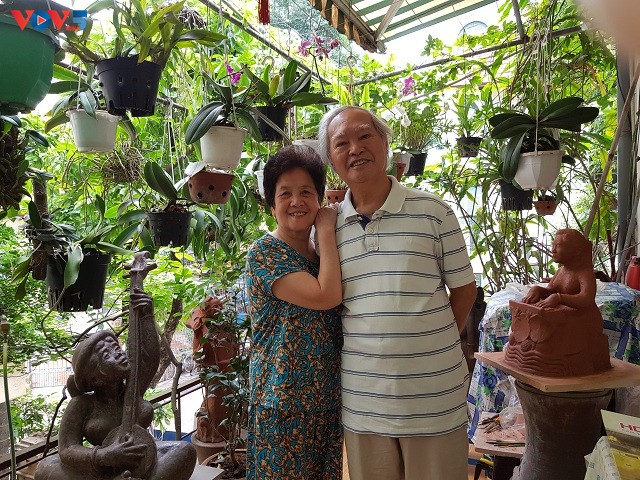 Hai vợ chồng nhà điêu khắc Hoàng Uyên. - Ảnh Phương Thúy |