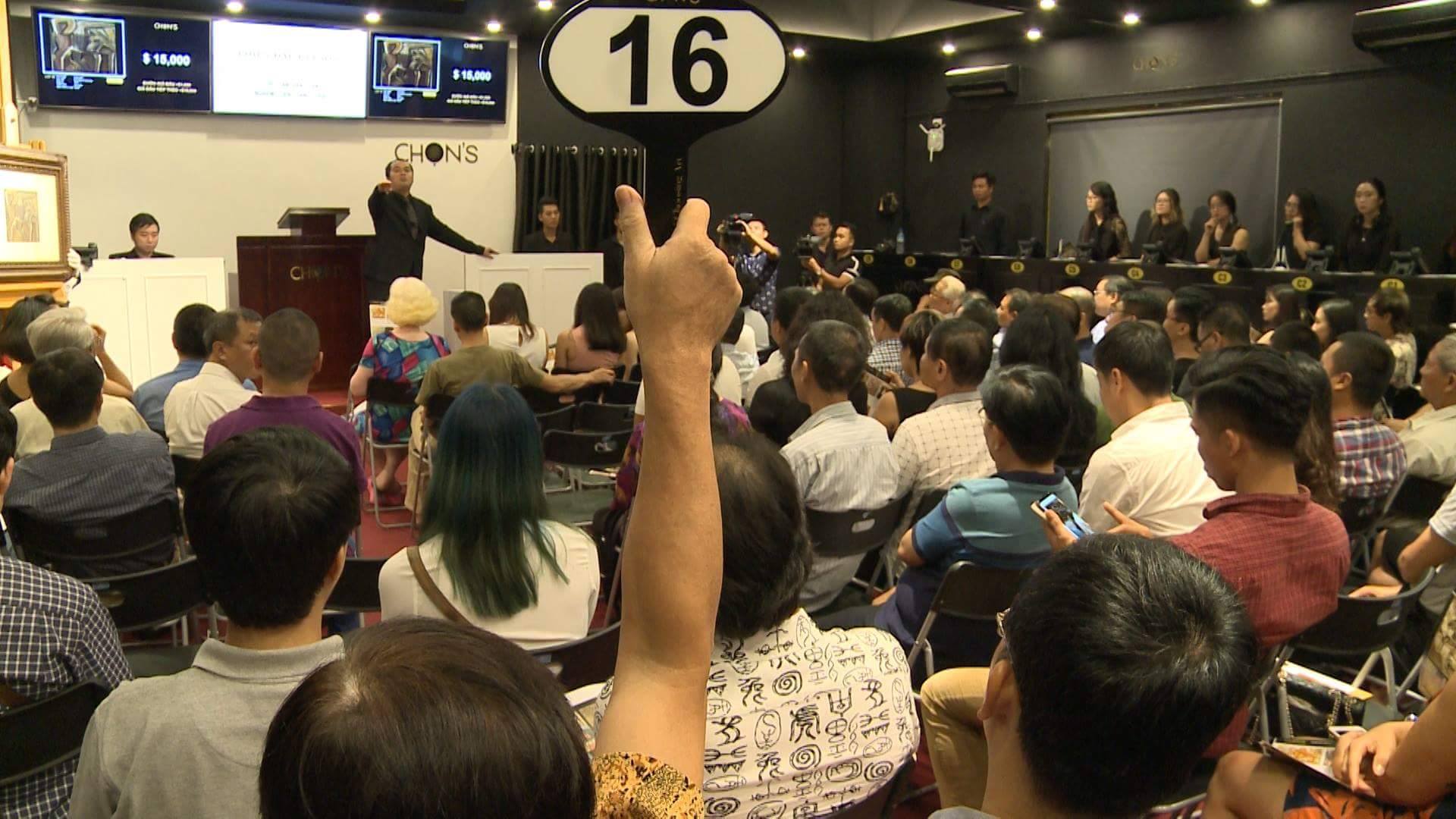 Những cái biển giơ lên, tiếng rao giá, tiếng búa gõ, tiếng chuyện trò rì rầm, tiếng vỗ tay…vang lên. Đó là không khí thường thấy ở Nhà đấu giá Chọn - một nhà đấu giá mới tròn 1 năm hoạt động, nhưng đã có thương hiệu và là địa chỉ quen thuộc để các nhà sưu tập tranh, người yêu hội họa lui tới.