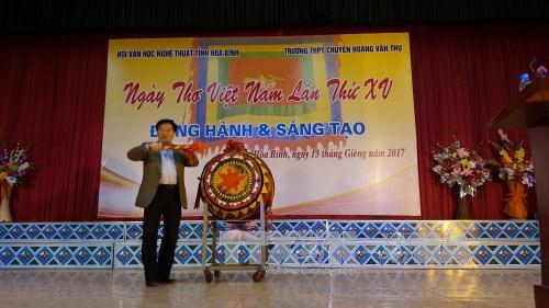 Cũng trong tối 9/2, Hội Văn học Nghệ thuật tỉnh Hòa Bình phối hợp với Trường Trung học phổ thông chuyên Hoàng Văn Thụ tổ chức Ngày thơ Việt Nam năm 2017. Với chủ đề “ Đồng hành và sáng tạo”, đêm thơ của giới văn nghệ sỹ tỉnh Hòa Bình trình diễn, ngâm vịnh trên 30 tác phẩm tiêu biểu, sáng tác mới về quê hương đất nước; có giá trị thẩm mỹ cao, góp phần đưa văn học đến với nhà trường.