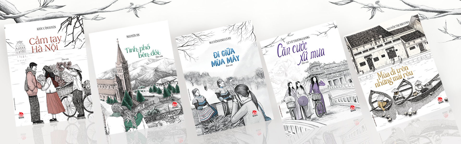 Cầm tay Hà Nội, Đi giữa mùa mây, Căn cước xứ mưa, Mùa đi trên những mái rêu và Tình phố bên đồi - bộ sách nhất-định-phải-có cho những bước chân son trẻ, những trái tim đầy xúc cảm trên hành trình dọc dài đất nước vào mùa Xuân này.