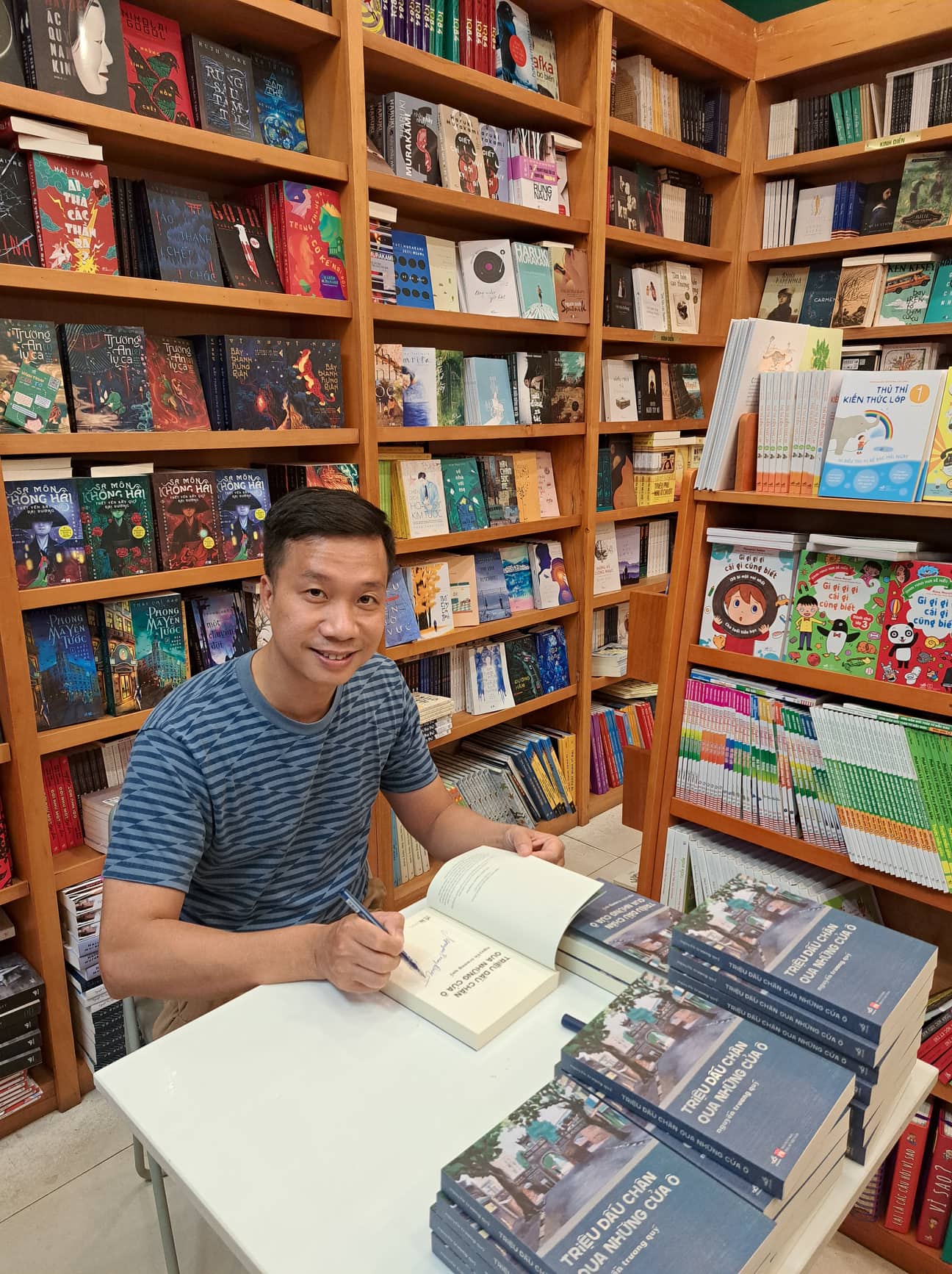 Nhà văn Nguyễn Trương Quý ký tặng sách cho độc giả. |