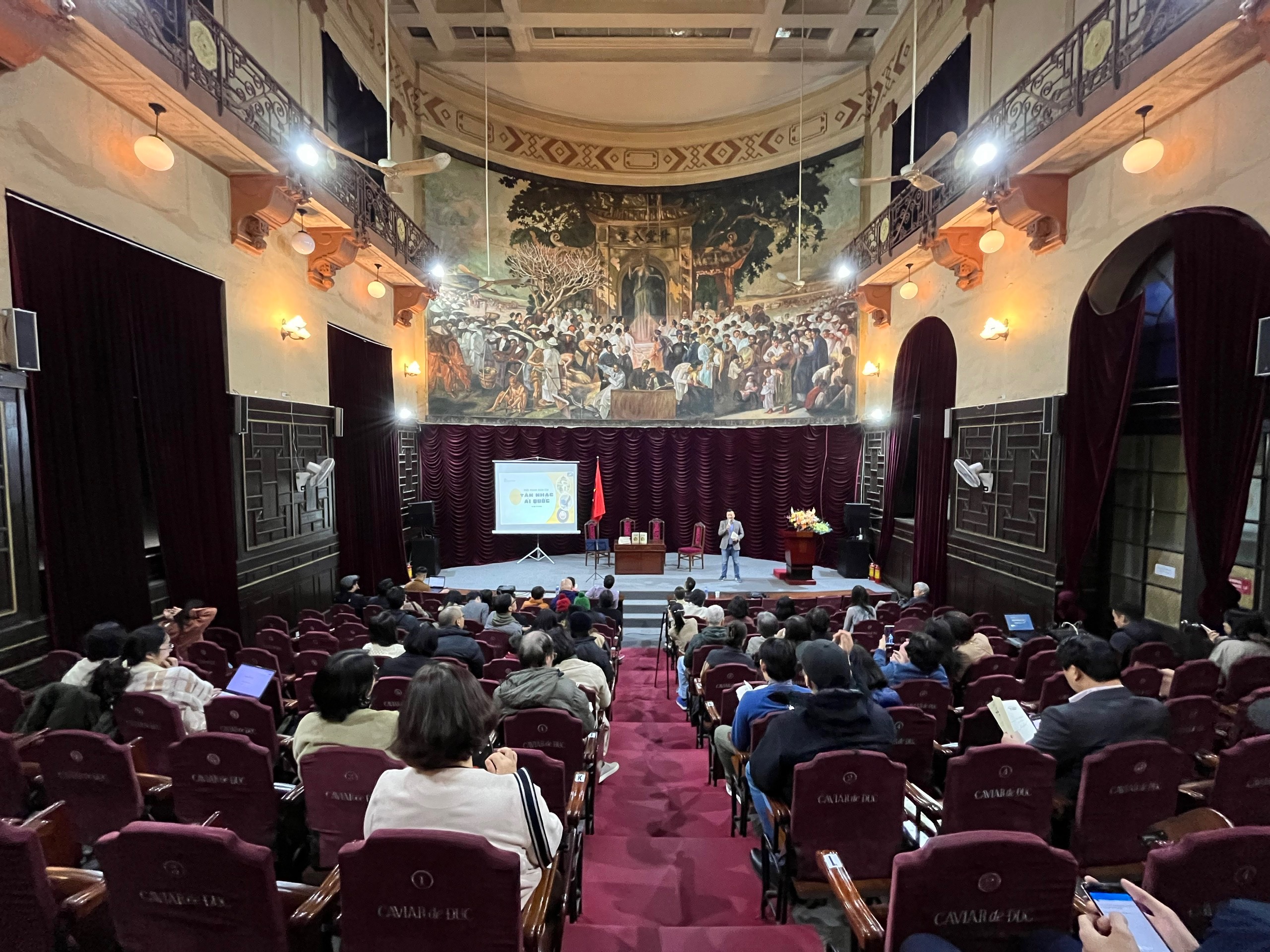 Buổi ra mắt sách diễn ra tại Hội trường Ngụy Như Kon Tum, Đại học Đông Dương cũ, bối cảnh cho những câu chuyện được khảo cứu trong cuốn sách - Ảnh: Bảo Anh/hanoitv.vn |