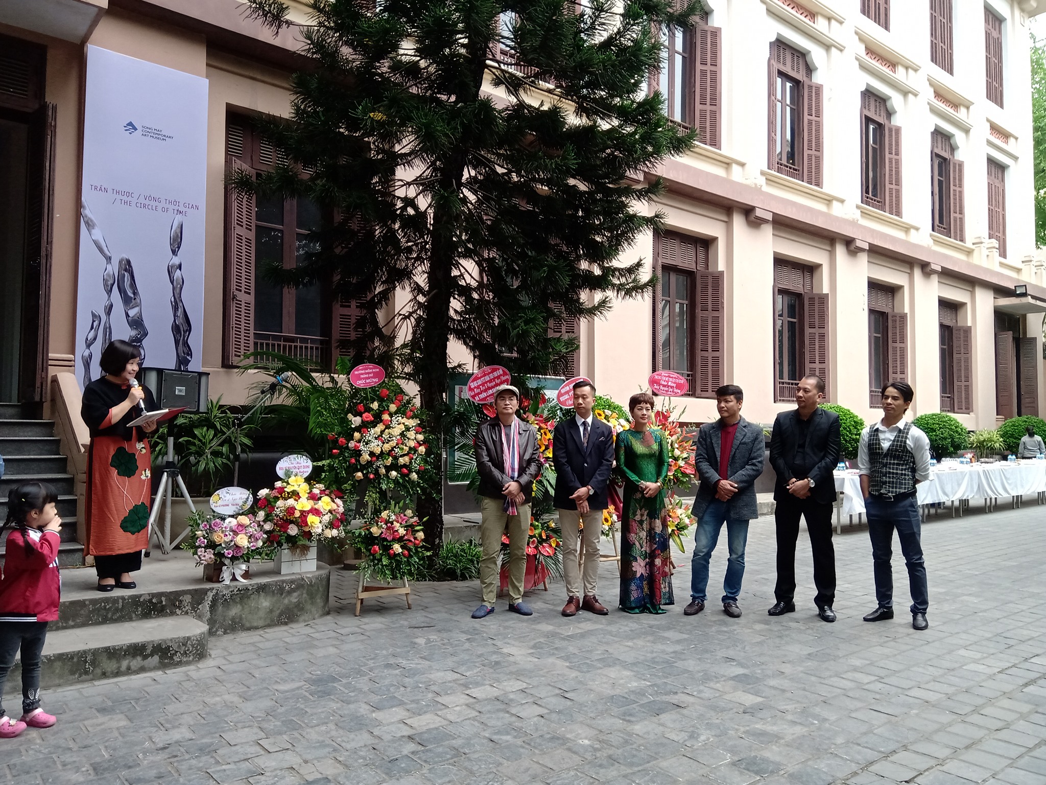 Các họa sĩ trong buổi khai mạc triển lãm. |