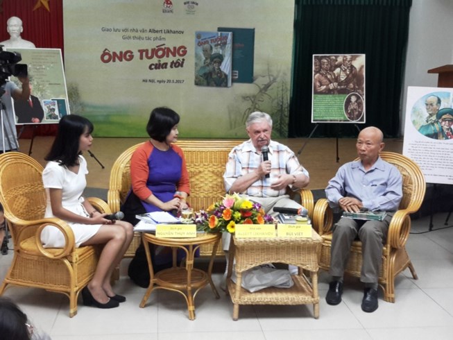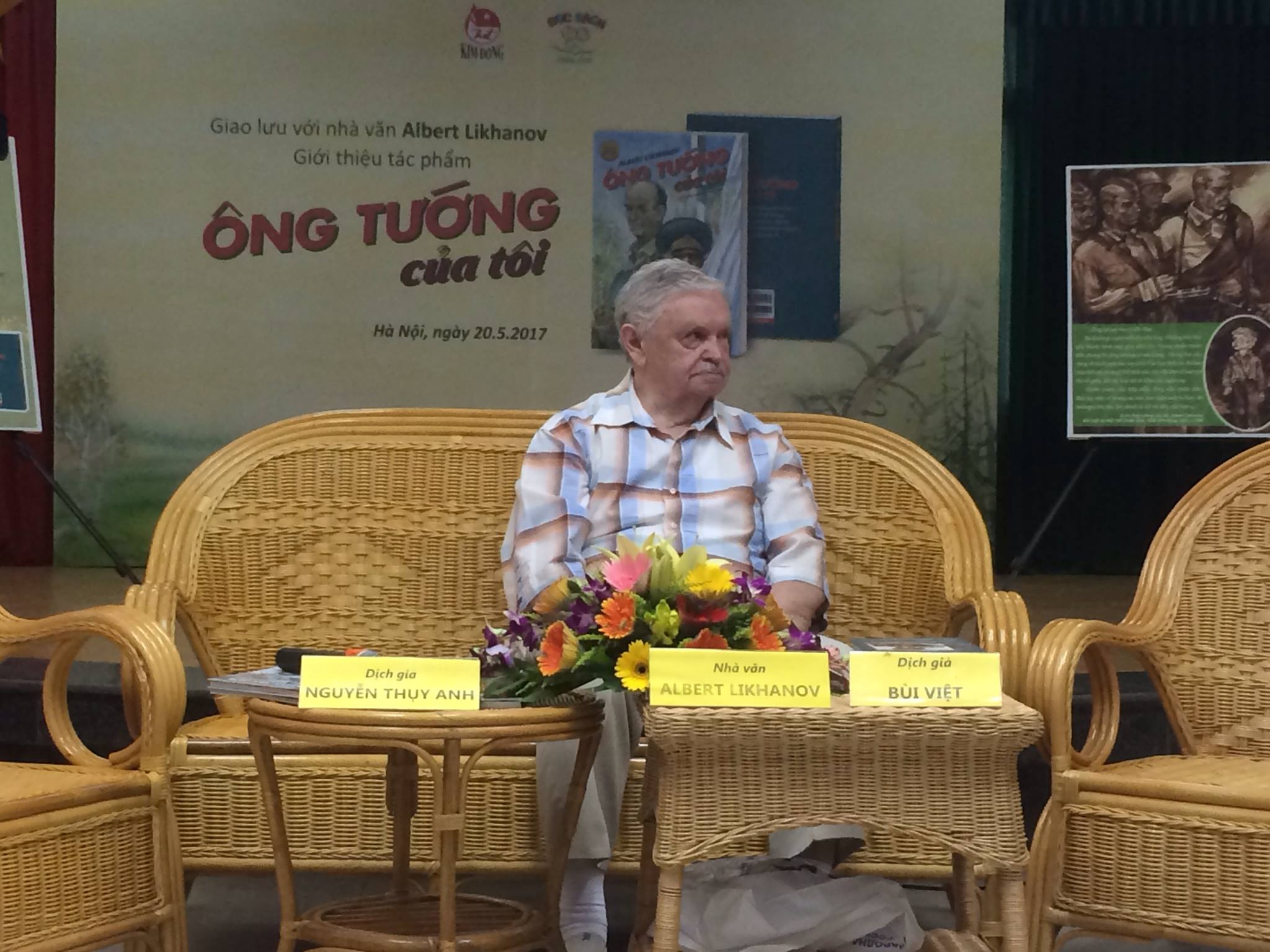 Lần đầu tiên đến Việt Nam, nhà văn lão thành Albert Likhanov rất cảm động trước thịnh tình của nhà xuất bản Kim Đồng, của các dịch giả, độc giả yêu văn học Nga. Dịch giả Thúy Toàn được ủy nhiệm đồng hành cùng hai cha con nhà văn trong suốt tuần thăm Việt Nam, giới thiệu cho nhà văn Nhà lưu niệm Văn học Nga ở Phù Lưu, Kinh Bắc. Dịp này, Albert Likhanov tặng Thư viện Hà Nội cuốn sách “Ông tướng của tôi” bản tiếng Nga. Đặc biệt, tại buổi giao lưu do NXB Kim Đồng tổ chức nhân dịp ra mắt sách, nhà văn Albert Likhanov đã chia sẻ với độc giả nhiều câu chuyện thú vị liên quan đến tác phẩm cũng như về văn học thiếu nhi của Nga. Điều khiến ông rất vui, không chỉ là sự có mặt của đông đảo người yêu văn học Nga và cả các độc giả nhí của Câu lạc bộ đọc sách cùng con, mà là sự bất ngờ khi có những độc giả mang đến cho ông xem những bản in khác nhau của Ông tướng của tôi ở Việt Nam.