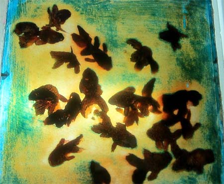 | Tranh sơn mài dương bản trên mặt kính của Phi Phi Oanh |