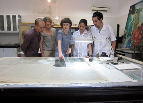 | Hình ảnh trong chương trình "Tập huấn phục chế tranh sơn dầu nâng cao" được tổ chức bởi Bảo tàng Mỹ thuật Việt Nam phối hợp với Viện Goethe Hà Nội và Trường Đại học Mỹ thuật Dresden (CHLB Đức) |