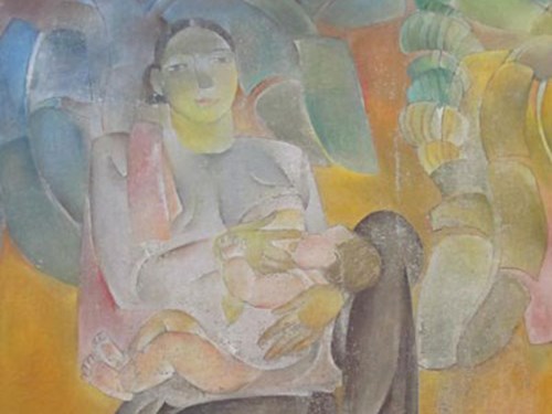 | Bức tranh sơn dầu “Mẹ con” của họa sỹ Lê Thị Kim Bạch. Ảnh: anninhthudo.vn |
