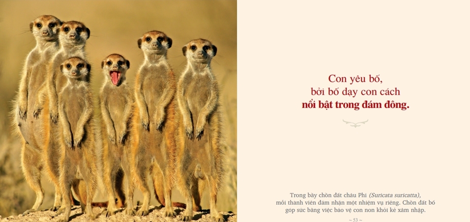 Những hình ảnh về tình cha con trong thế giới loài vật trong cuốn sách “có thể giúp ta diễn tả những điều mà không ngôn từ nào diễn tả được” – như lời tác giả cuốn sách chia sẻ.
