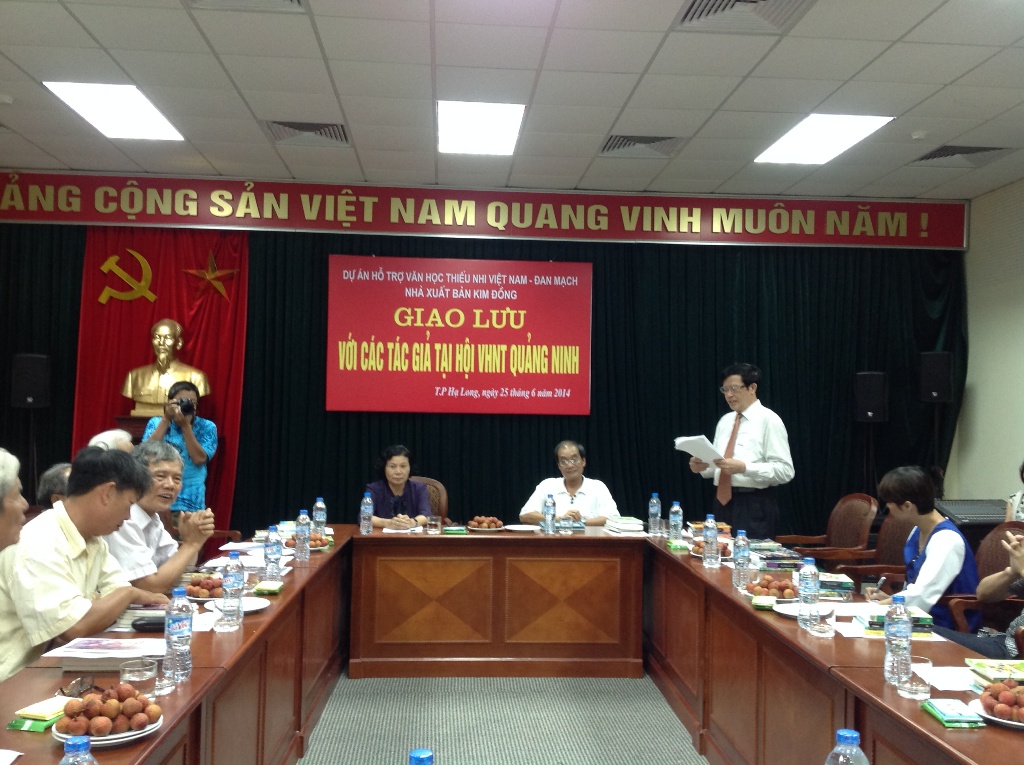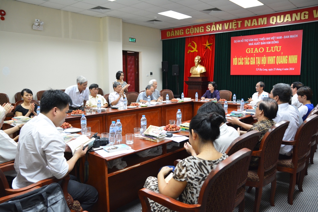 Ngày 25/6/2014 vừa qua, đoàn Dự án Hỗ trợ Văn học Thiếu nhi do Hội nhà văn Đan Mạch và Nhà xuất bản Kim Đồng phối hợp triển khai đã tới giao lưu với các nhà văn, họa sĩ tỉnh Quảng Ninh. Tại đây, đoàn cán bộ của Dự án đã chia sẻ về chủ đề của cuộc vận động sáng tác (VĐST) năm 2013-2015: “Gõ cửa Trái tim” dành cho thể loại văn xuôi và “Ngày tôi gặp…” dành cho thể loại tranh truyện. Nhiều nhà văn, họa sĩ đất Mỏ đã tham dự giao lưu và có những chia sẻ chân tình, thẳng thắn, cởi mở về những vấn đề sáng tác cho thiếu nhi hiện nay.