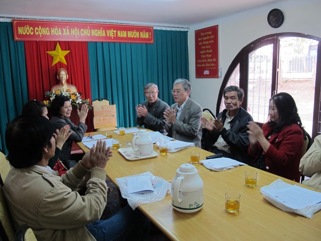 | Các thành viên trong đoàn trao đổi với Hội Văn học nghệ thuật tỉnh Lâm Đồng |
