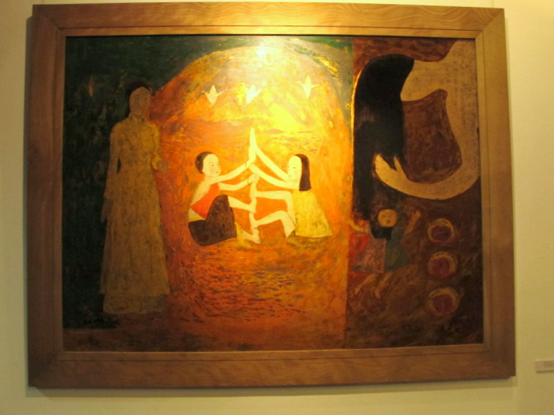 Nếu như hai nữ họa sĩ Đặng Thu Hương và Nguyễn Thị Quế thể hiện hết sức tinh tế và nữ tính về đề tài thiên nhiên, hoa cỏ của người Việt được thì họa sĩ Lý Trực Sơn lại đi vào không gian khác. Ông dẫn người xem đến những ký ức bình dị, chân chất của làng quê Việt – nơi khởi nguồn của văn hóa Việt Nam.