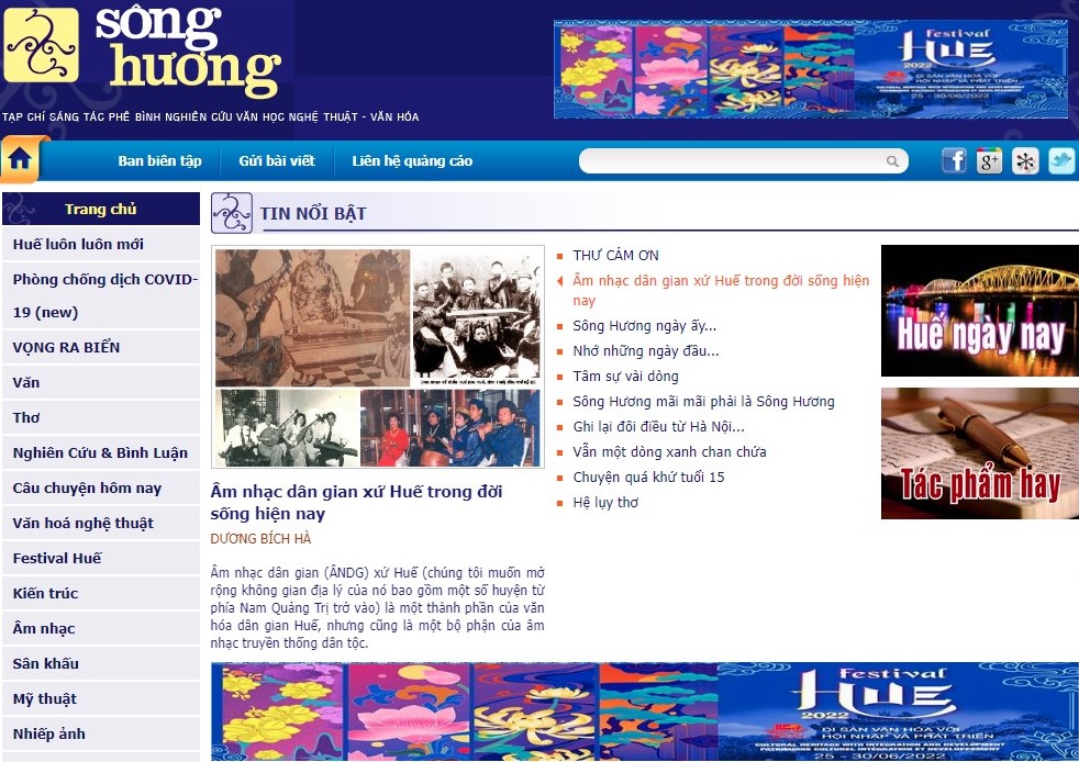 Tạp chí Sông Hương - một trong những trang văn nghệ điện tử có nội dung sâu sắc được bạn đọc quan tâm. - Ảnh chụp màn hình |