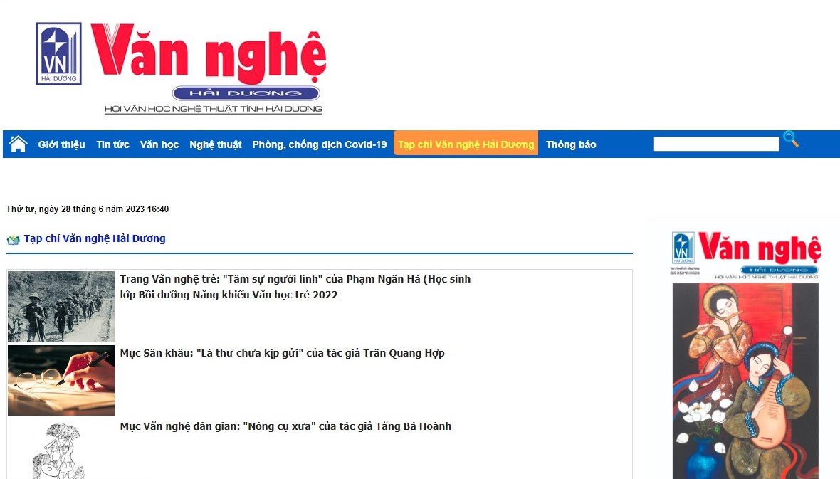 website Tạp chí Văn nghệ Hải Dương - Ảnh chụp màn hình. |