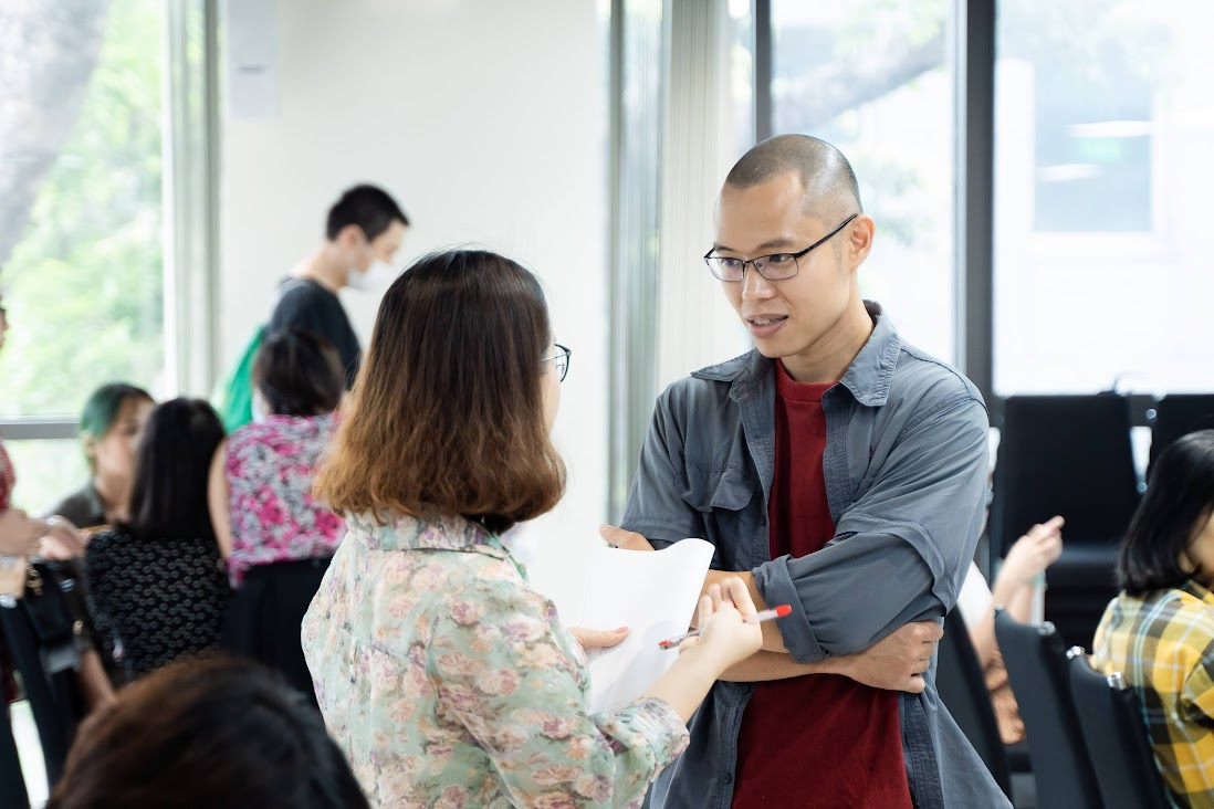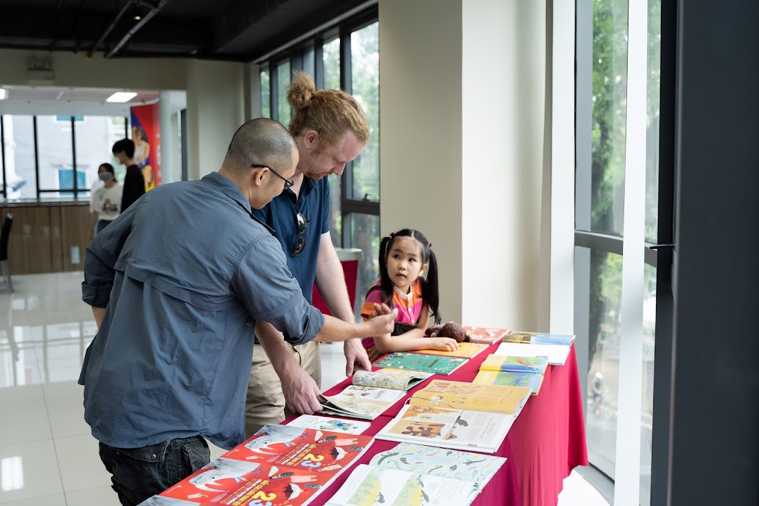 Họa sĩ và độc giả nhí tại buổi ra mắt sách. |