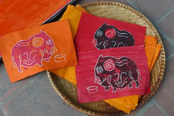 Anh Phạm Quốc Đức – Sinh viên Trường Đại học Mỹ thuật Việt Nam, một người bạn đồng hành cùng chị Hoà trong quá trình phục dựng chia sẻ: “Thực hành làm tranh vẽ trên giấy dó được nhuộm màu đỏ điều, hồng cánh sen, màu vàng cam. Nó ảnh hưởng nhiều lối cầm bút ngày xưa của các cụ dùng chữ Nho. Dòng tranh này cần phải đào sâu hơn nữa và tìm hiểu về chất liệu nhiều hơn nữa”.