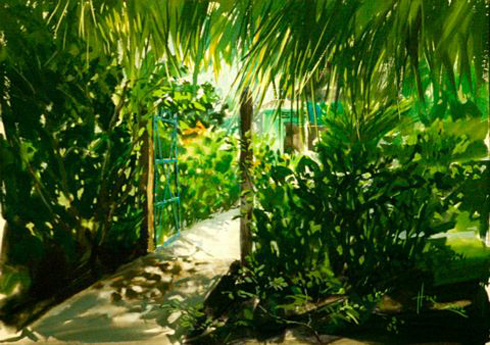 “Nhìn vào đây người xem sẽ cảm nhận được một niềm vui man mác vì cành hoa hồng không hề khoe sắc. Đôi giày này có thể là của một người lính hoặc một người hiếu chiến nào đó. Khi bạn đem đến nỗi đau cho người khác thì dù bạn chiến thắng cũng không thể hạnh phúc trọn vẹn. Khi vẽ một bức tranh nó cũng giống như làm một bài thơ hay viết một bài văn tản mạn về cuộc sống vậy. Nó là một phần của cảm nhận và tôi diễn tả bằng ngôn ngữ hội họa. Và tôi đang thấy rất thoải mái để sáng tạo mà không hề có gì ép buộc hoặc bó buộc mình cả, tất cả bằng cảm xúc rất thật…"