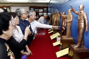 | Cán bộ cao cấp nghỉ hưu góp ý kiến 32 mẫu phác thảo Tượng đài Chủ tịch Hồ Chí Minh. (Ảnh: Hoàng Hải/TTXVN) |