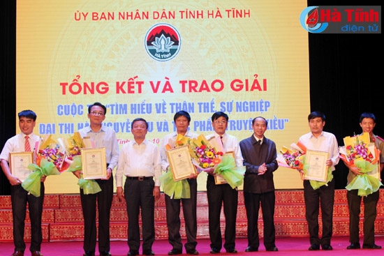 | Trao các giải nhất, nhì, ba cho 6 tập thể. Ảnh: baohatinh.vn |