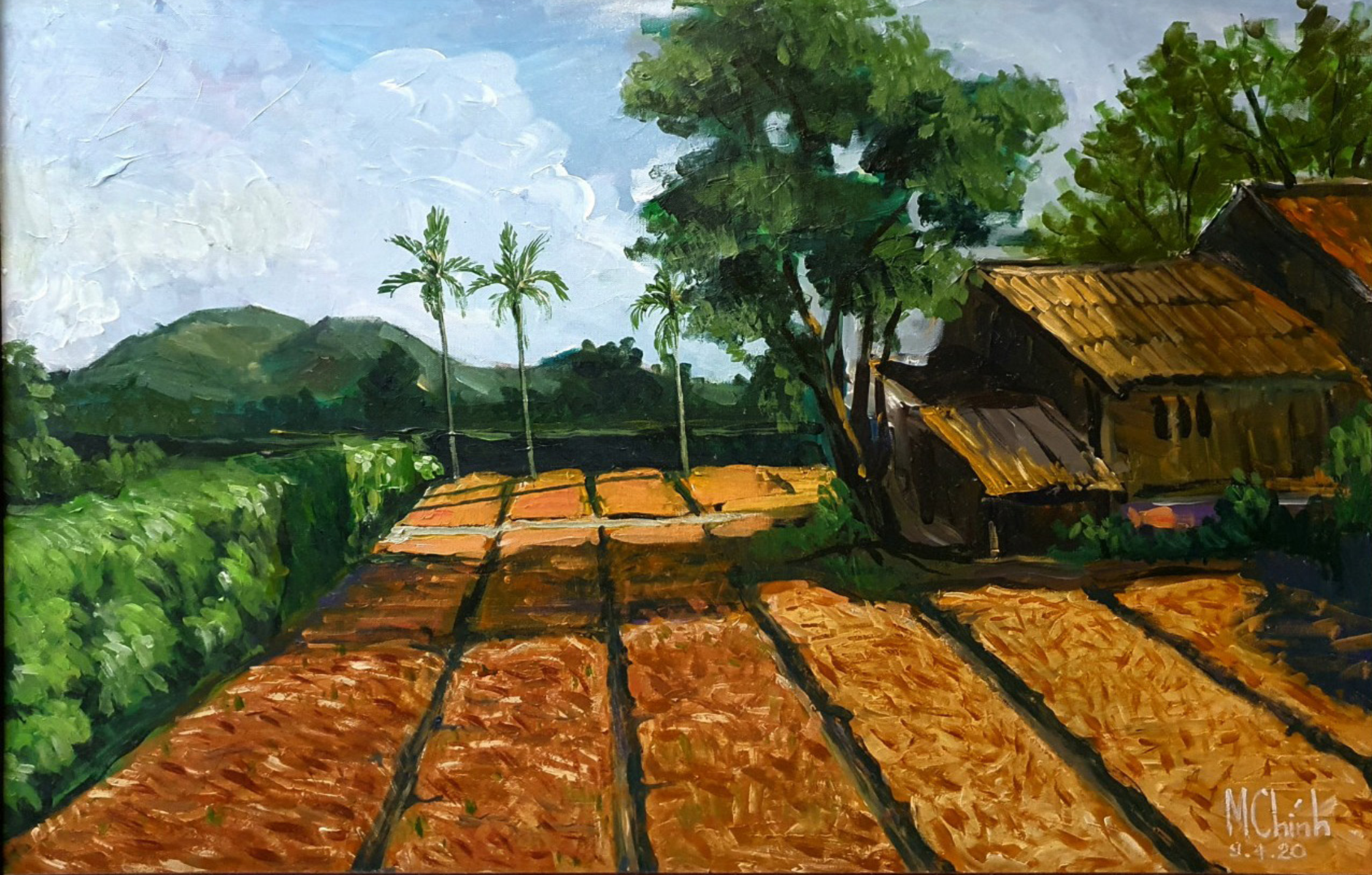 Vẽ là một thực hành thiền tìm về của Nguyễn Minh Chính. Anh ghi lại sự xao động từ một cái nhìn tĩnh tại bình an để ngân lên khúc đồng vọng của con người trong tình yêu với mẹ thiên nhiên.