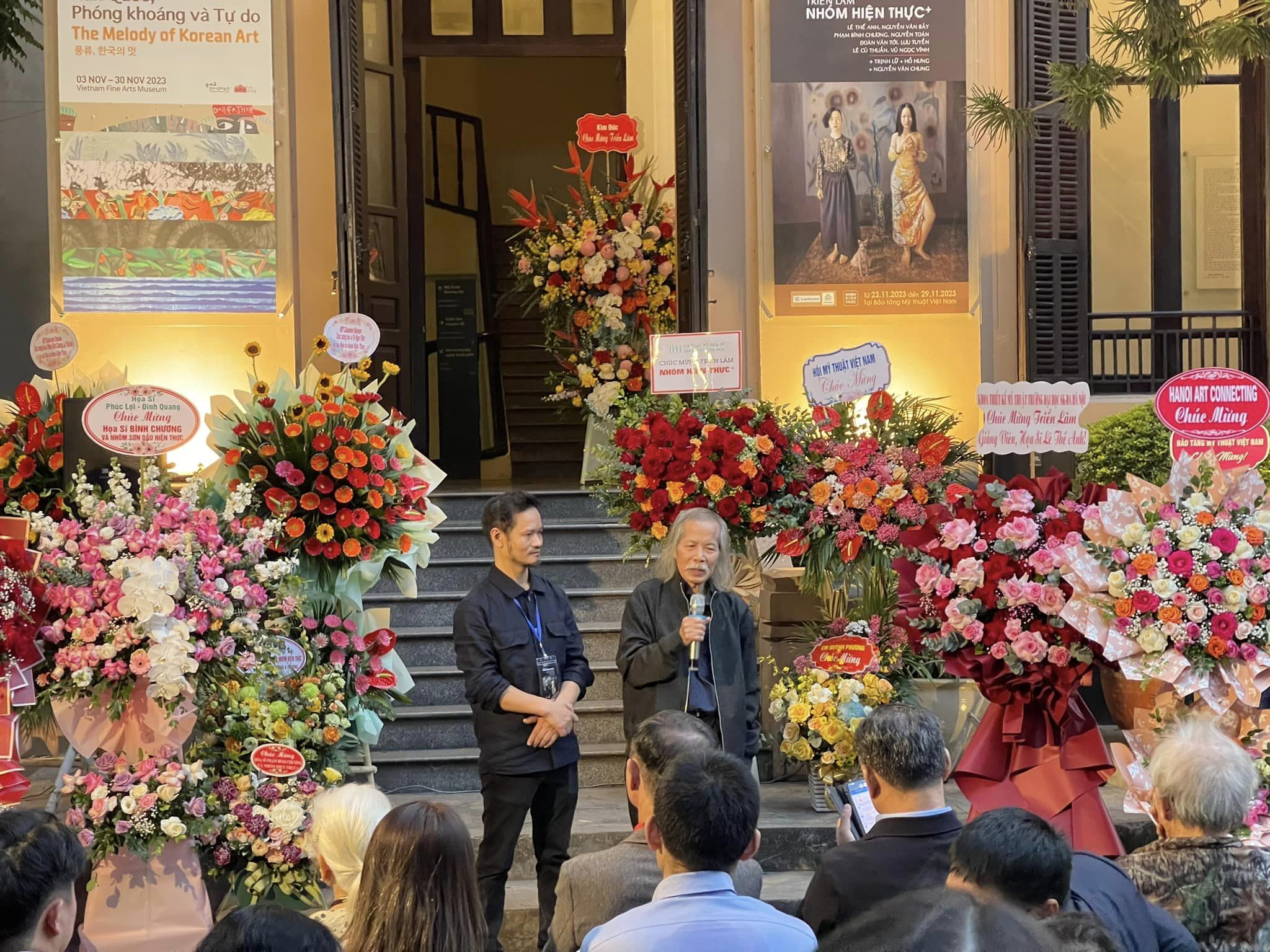 Họa sĩ Lương Xuân Đoàn, Chủ tịch Hội Mỹ thuật Việt Nam phát biểu khai mạc triển lãm nhóm Hiện thực+ |