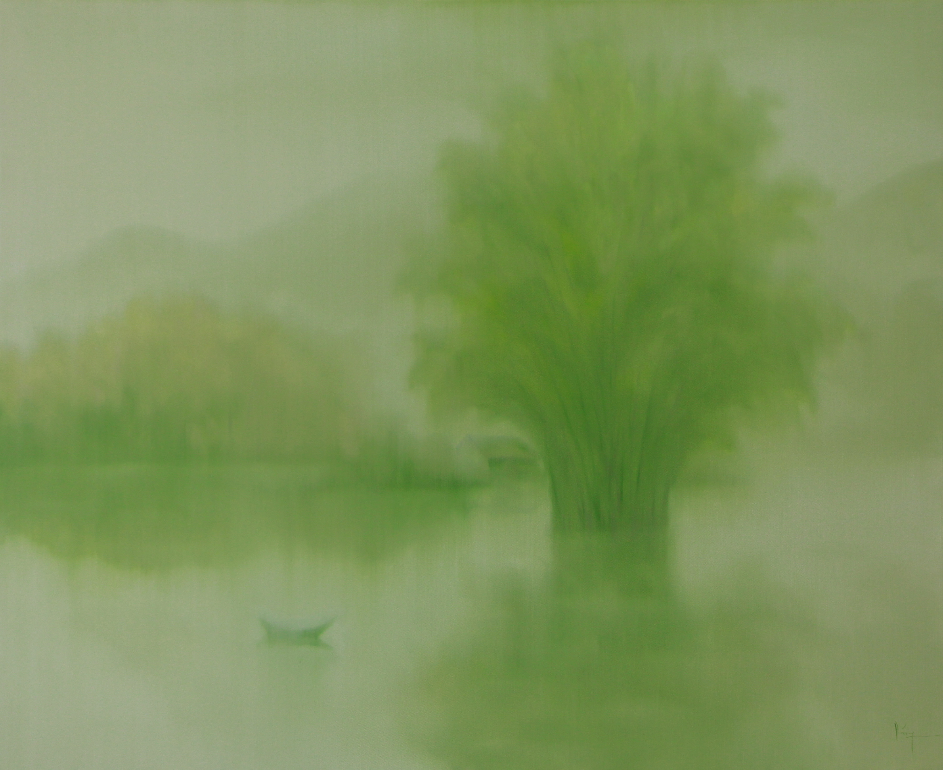 Quả vậy, những tác phẩm sơn dầu của họa sĩ Hoàng Đức Dũng khiến người xem có đôi chút bối rối với không gian mơ màng. Anh mang đến những trong trẻo, tinh khiết của những buổi sớm mai nơi làng quê yên ả. Nói như nhà nghiên cứu nghệ thuật Phạm Long, có thể tranh của Đức Dũng dường như đang “cân bằng lại tâm trạng bất an của người phố thị hôm nay” nhưng chắc chắn “phía sau những khung cảnh thiên nhiên dường như tĩnh lặng kia là những trăn trở triền miên về kiếp người”. Họa sĩ Hoàng Đức Dũng bộc bạch: “Đây là một phong cách khá tiêu biểu của tôi, vẽ một không gian mờ ảo, các hình thể không thực sự rõ ràng. Những dòng sông hoặc những đối tượng tôi diễn tả thường là trong một không gian giữa thực và ảo, giữa cái rõ và mờ, giữa hư và thực. Thực ra cuộc sống luôn vận động và phát triển và khi vẽ tôi muốn diễn tả cuộc sống trong vận động đó”.