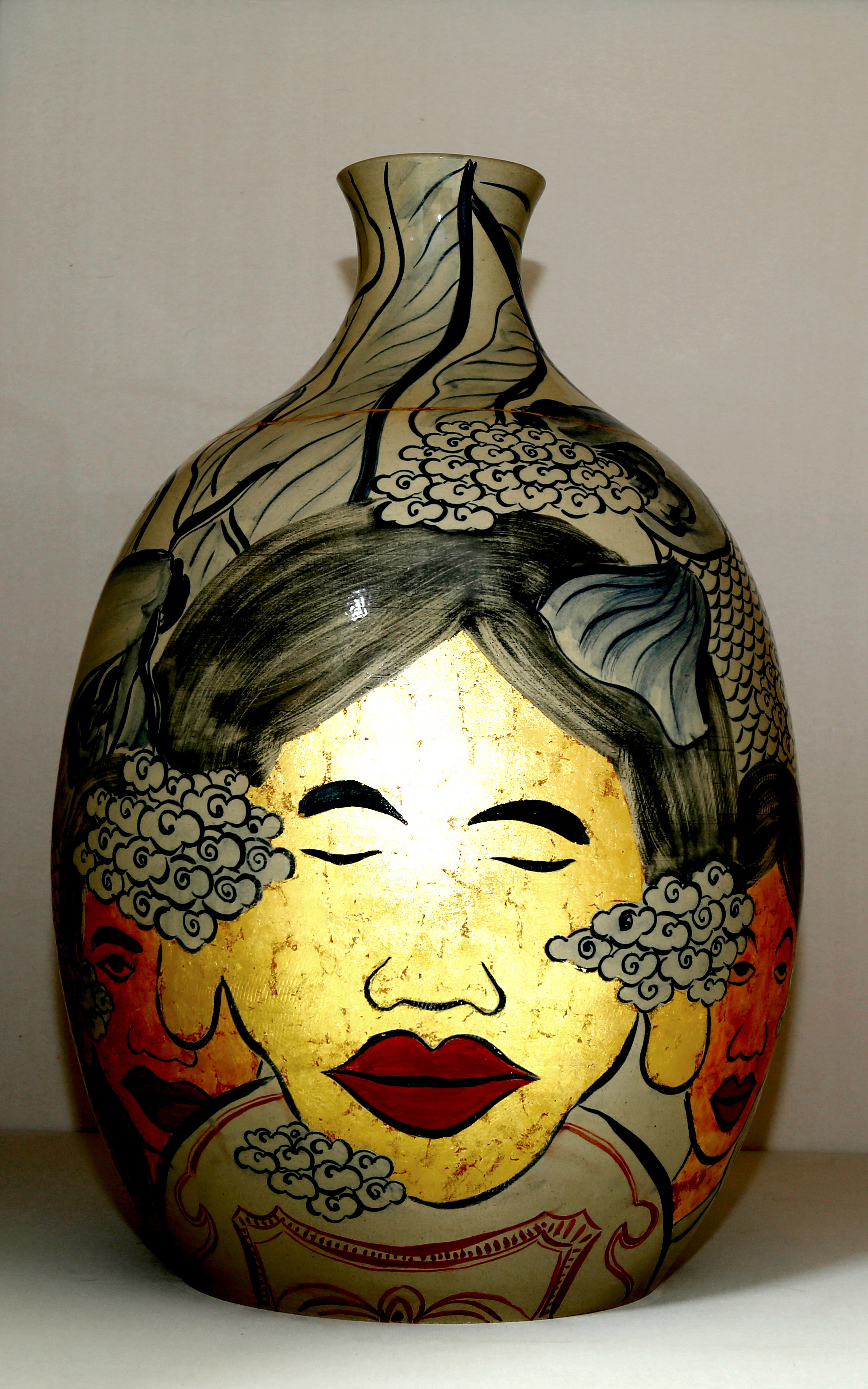 Trịnh Vũ Hiếu, Mơ 1, gốm và sơn mài, cao 72cm, đường kính lớn nhất 50cm, 2017 |