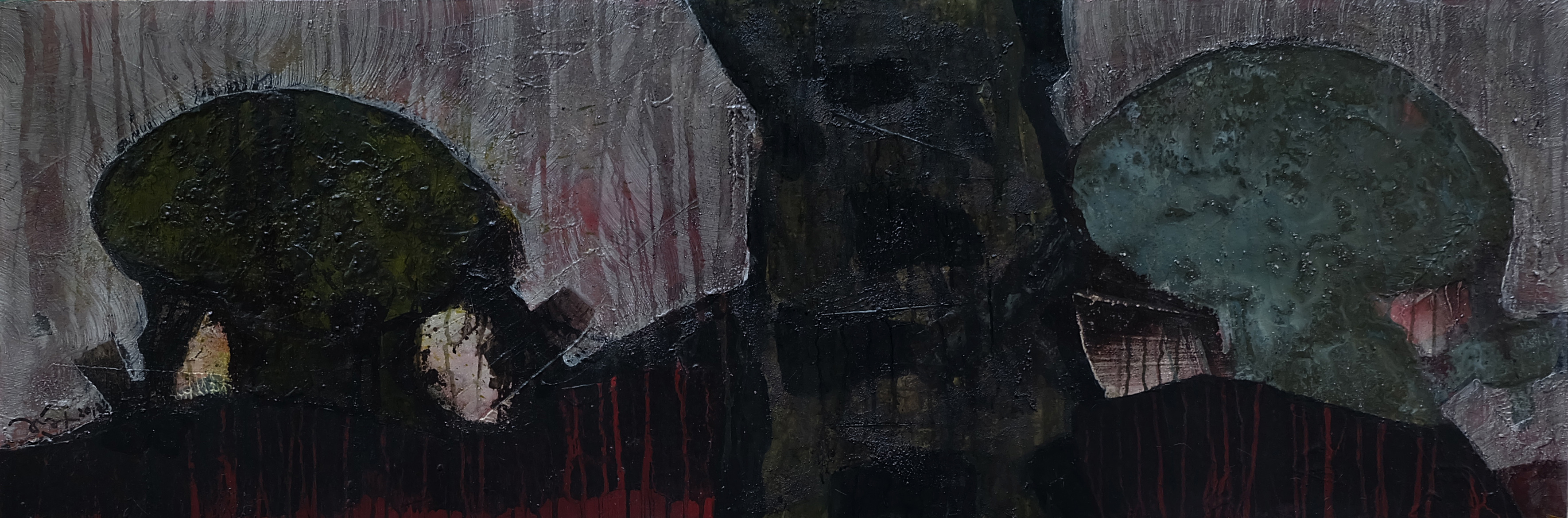 Lê Anh Quân, Hình và bóng, acrylic trên toan, 60x180cm, 2017 |