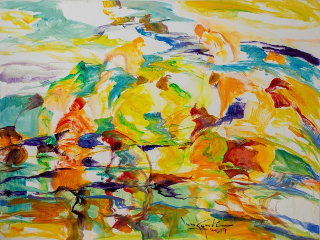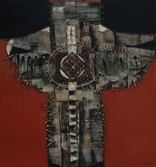 Tác phẩm của họa sĩ Edi Sunaryo, người Indonesia có tên Cổ vật, 2019,130 x 120 cm, Sơn dầu trên vải |