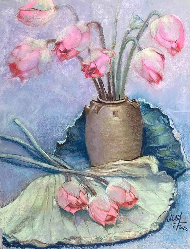 Tranh vẽ Sen Tây Hồ của họa sĩ Trịnh Lữ - Tác phẩm được in trong cuốn Trịnh Lữ Ghi chép - Ảnh: FB nhân vật. |